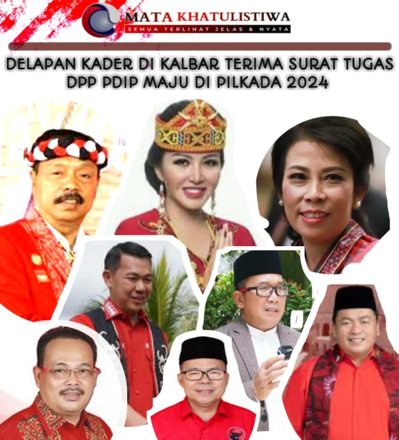 8 kader yang menerima surat tugas DPP PDIP tersebut diantaranya Karolin Margret Natasa Petahana di Pilkada Kabupaten Landak Tahun 2024, Thomas Alexander di Kabupaten Ketapang, Tjhai Chui Mie Petahana di Pilkada Kota Singkawang tahun 2024, Malin Cakada di Kabupaten Melawi, Yohanes Ontot Petahana di Pilkada Kabupaten Sanggau tahu. 2024, Fransiskus Diaan Petahana Pilkada 2024 di Kabupaten Kapuas Hulu, Sujiwo Bendahara DPD PDIP Kalbar yang mendapat Surat Tugas DPP PDIP maju di Pilkada Kabupaten Kubu Raya tahun 2024 serta Senator/Anggota DPD RI Asal Kalbar, Sukriyanto yang bergabung di PDIP pada Pileg 2024 lalu juga memperoleh surat tugas DPP PDIP untuk maju di Pilkada Kota Pontianak Tahun 2024. “Pemberian surat tugas DPP PDIP untuk Pilkada Tahun 2024”. Terang foto yang di posting akun Instagram #dpdpdiperjuangankalbar. Kamis, (06/06/2024).