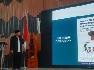 Ketua PW Ikatan Penyuluh Agama Republik Indonesia Provinsi Kalimantan Barat, H. Kartono saat menyampaikan materi Bonus Demografi dalam workshop kepenyuluhan di Aula Bupati Kubu Raya.