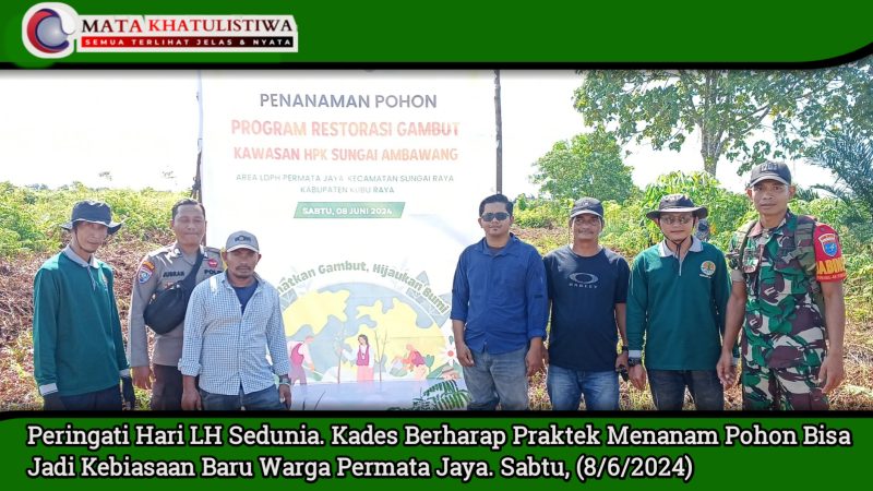 Matakhatulistiwa.id. – Kubu Raya – Setiap 5 Juni menjadi tanggal yang di peringati sebagai hari lingkungan hidup (LH) sedunia. Memperingati hari LH sedunia, puluhan masyarakat dari sejumlah organisasi masyarakat sipil, komunitas pecinta alam dan instansi pemerintah melakukan penanaman pohon bersama di Desa Permata Jaya, Kecamatan Sungai Raya, Kabupaten Kubu Raya. Sabtu, (8/6/2024).