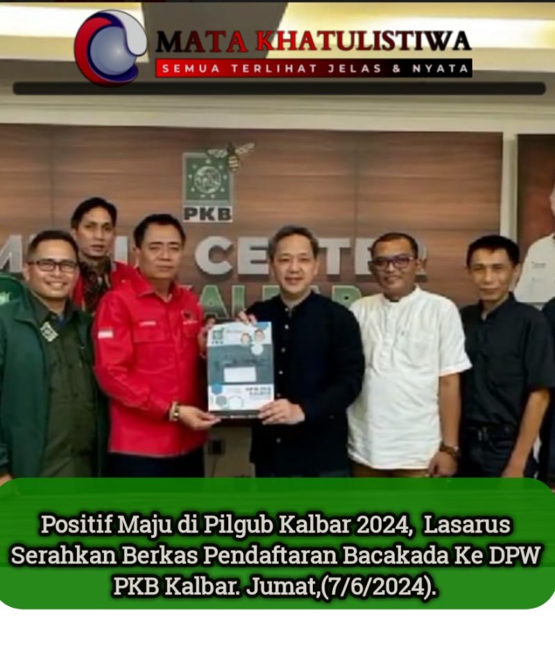 Positif Maju di Pilgub Kalbar 2024, Lasarus Serahkan Berkas Pendaftaran Bacakada ke DPW PKB - Mata Khatulistiwa